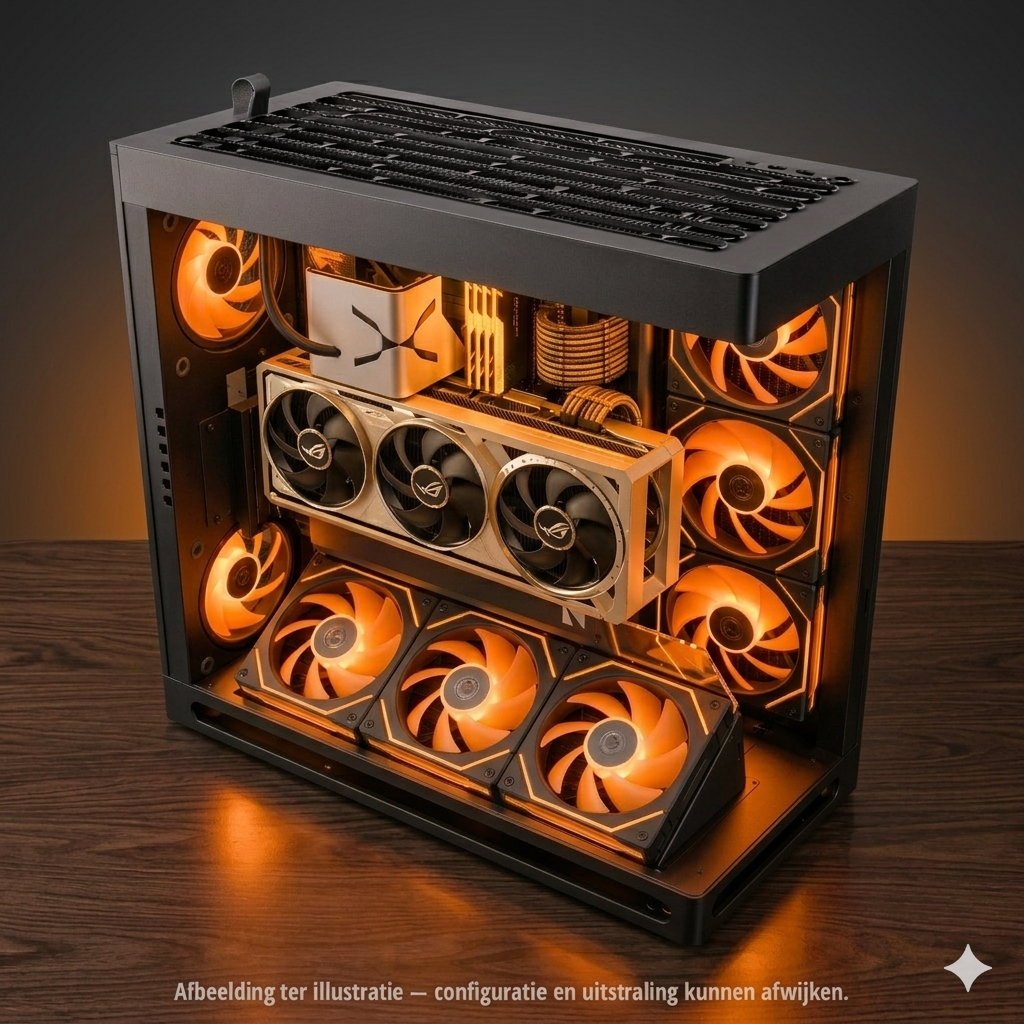 Deze configuratie combineert Intel’s high-end Ultra 9 platform met een RTX 5090 en 64GB DDR5 voor uitzonderlijke prestaties in 3D-rendering, AI-workloads, video-productie en high-end gaming.