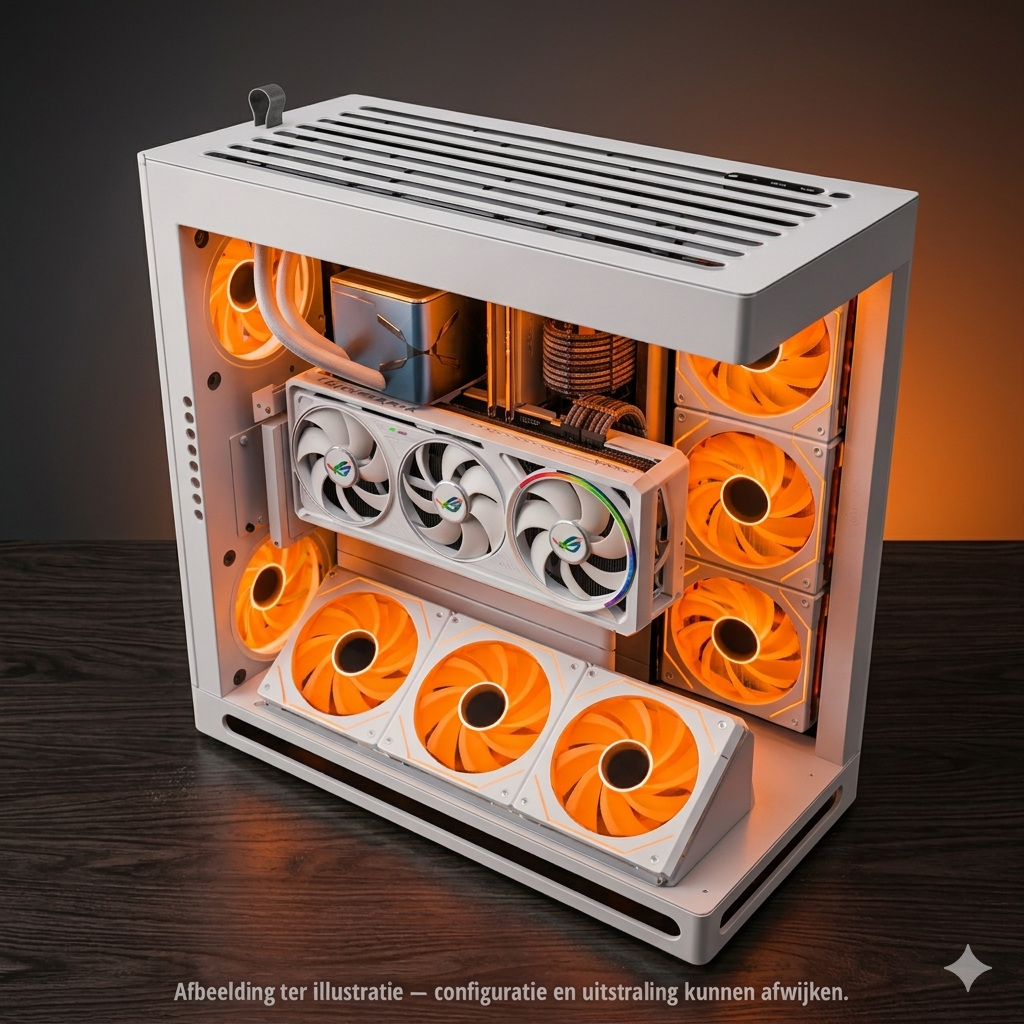 Deze configuratie combineert Intel’s high-end Ultra 9 platform met een RTX 5090 voor uitzonderlijke prestaties in 3D-rendering, AI-workloads, video-productie en high-end gaming.